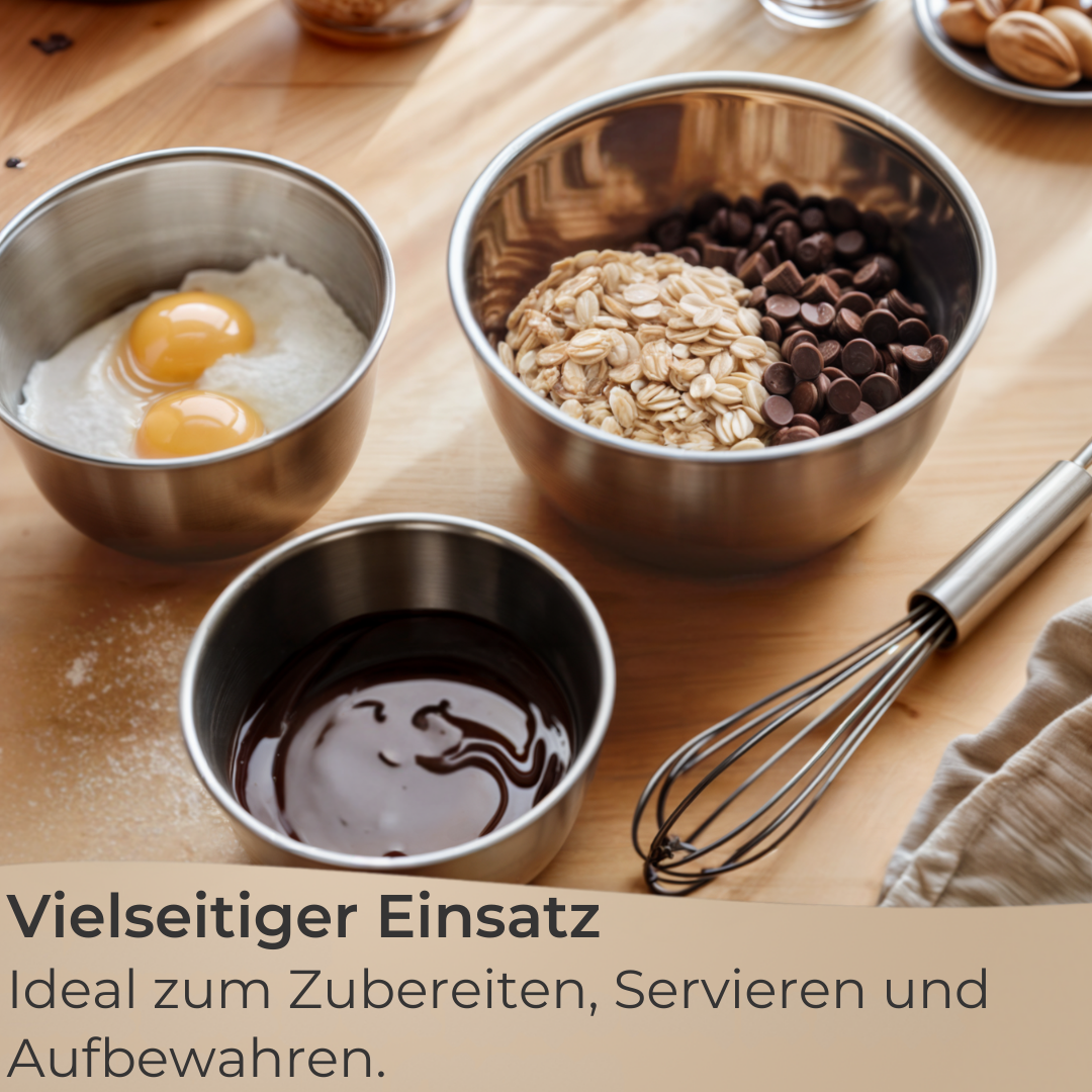 With the TOPANBIETER 999 3- piece bowl set, you get the ideal solution for preparing, serving, and storing food. Your food stays fresh for a long time thanks to three stainless steel bowls of different sizes and matching, airtight lids. Perfect for salads, leftovers, or meal prep.