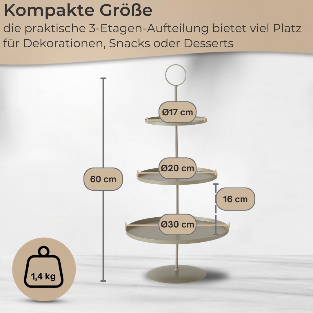 3-tier beige H 60 cm Ø tier 1- 30 cm, Ø tier 2- 20 cm Ø Level 1- 17 cm Weight: 1.4 kg