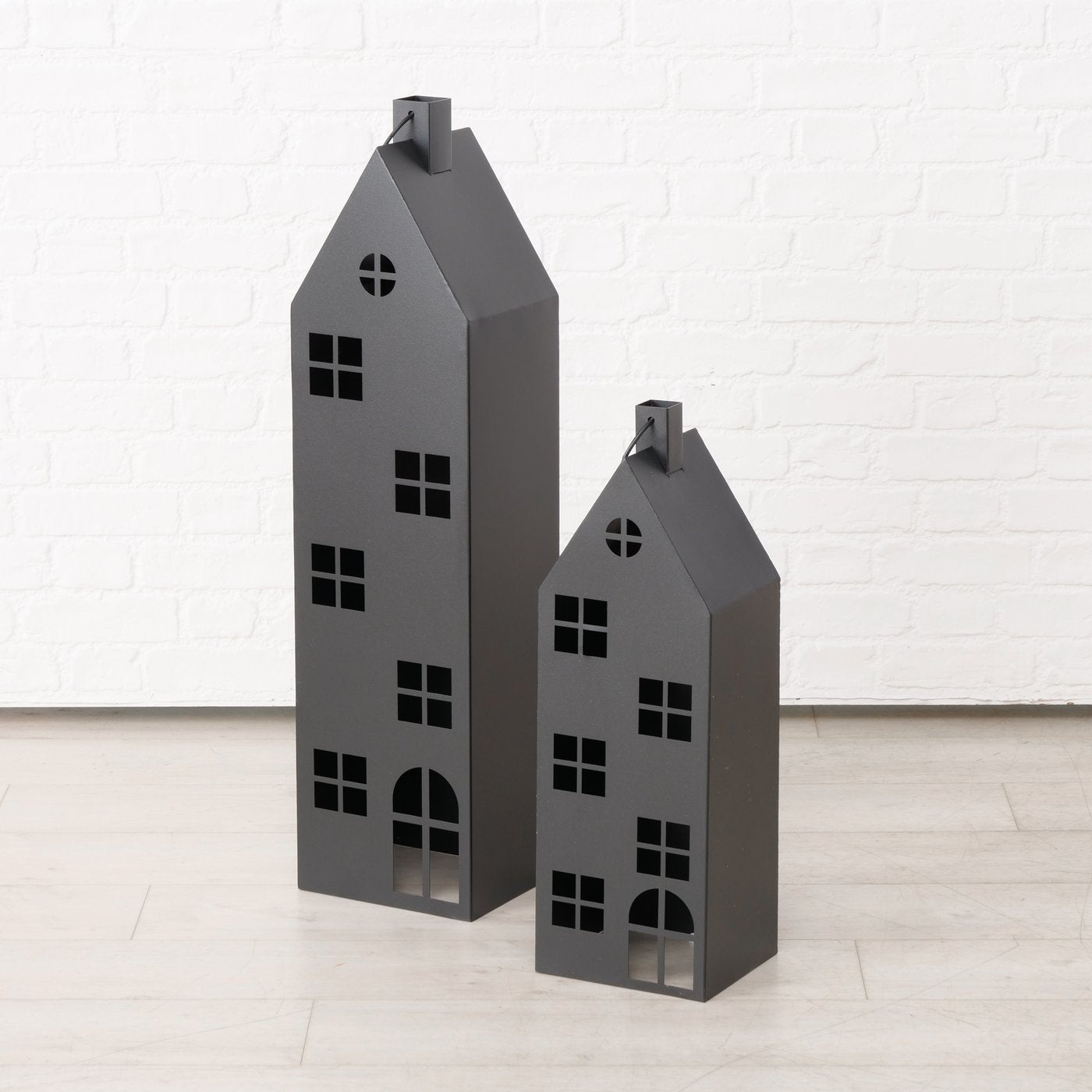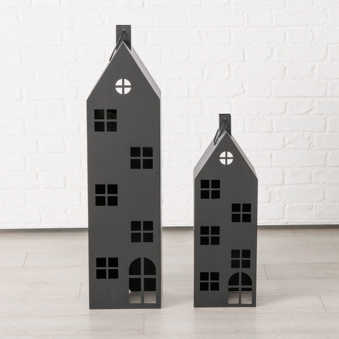 Laterne Haus – 2er Set aus Metall in Schwarz