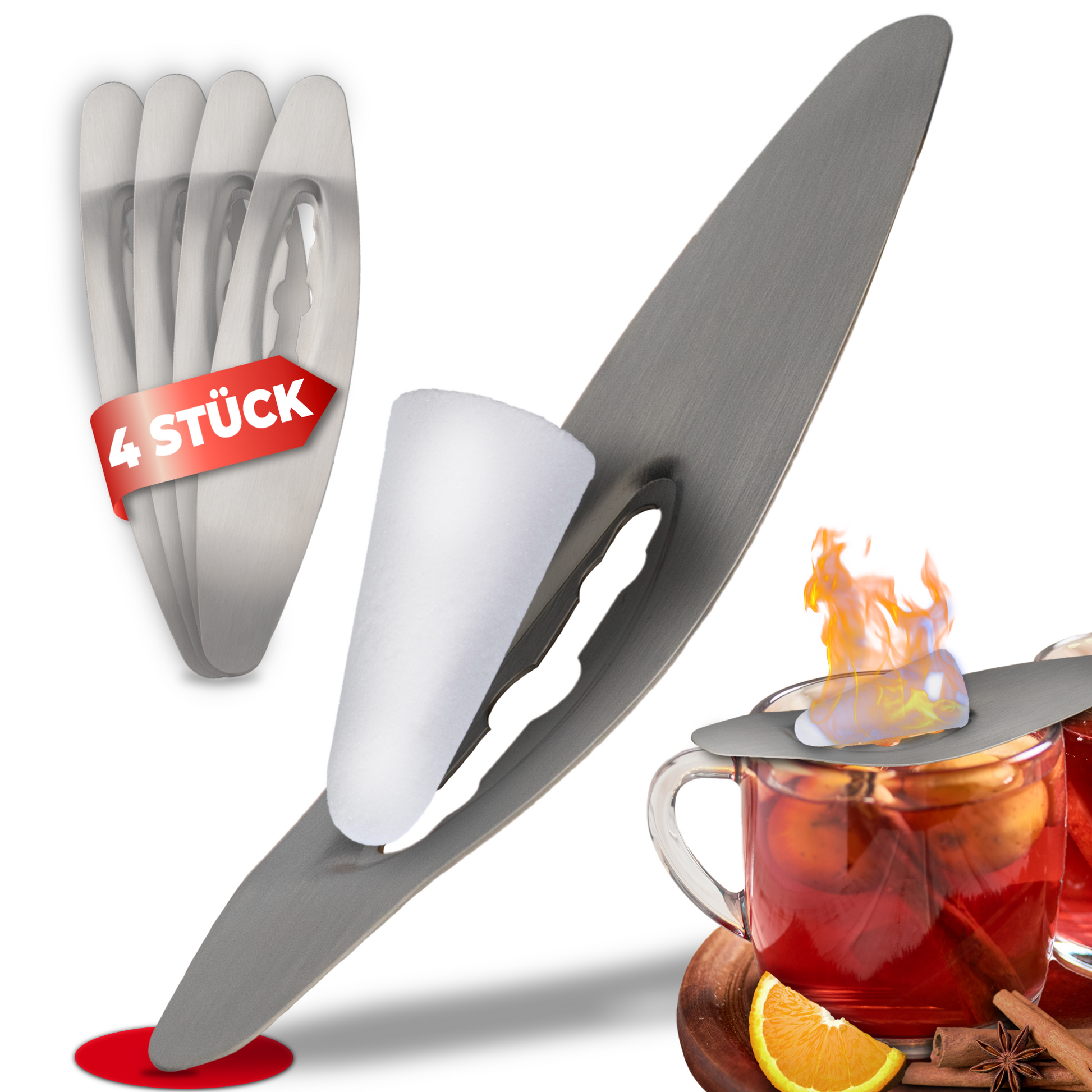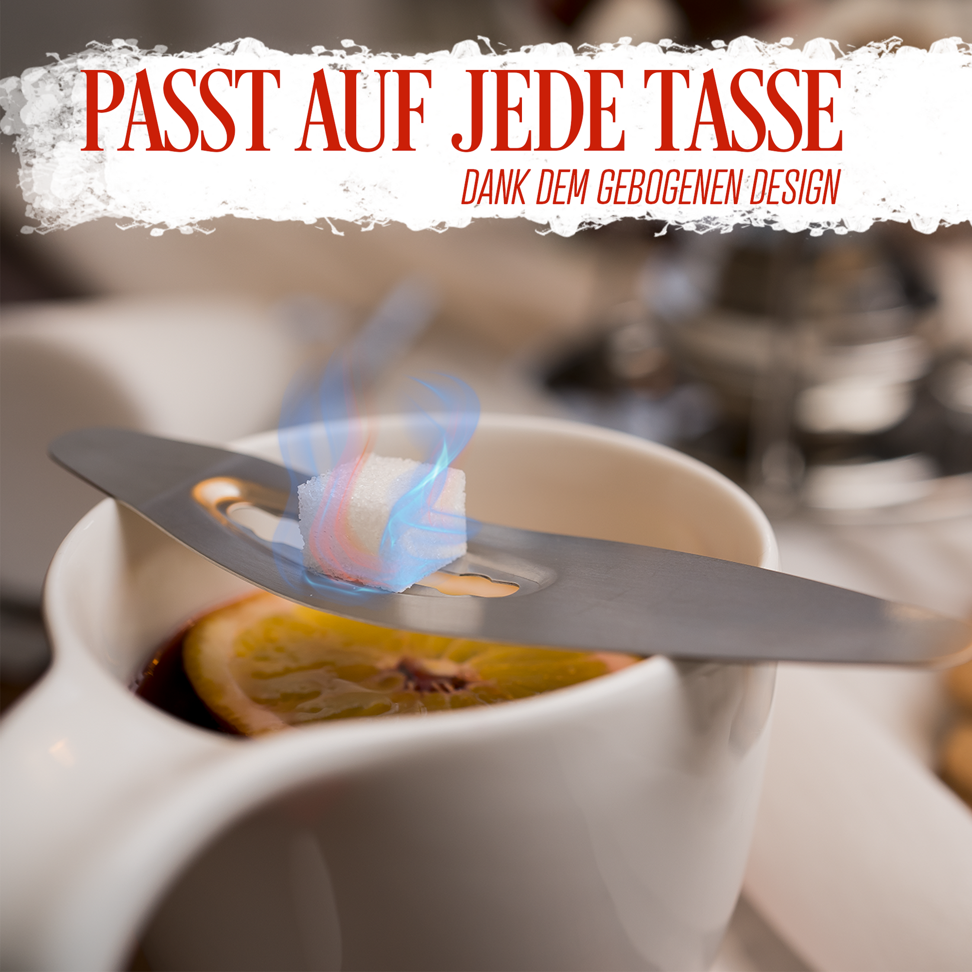 Für den außergewöhnlichen Geschmack können Sie auch Zitronen- und Orangenscheiben direkt auf die Minifeuerzange legen, darüber den Würfelzucker geben und das Ganze wieder mit Rum beträufeln und anzünden. So genießen Sie das besondere Aroma der Zitrusfrüchte!