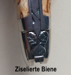 Die Klingen des Schnitzmessers sind aus französischem Stahl (T12) geschmiedet, der speziell für Forge de Laguiole® hergestellt wird. Die Klingen werden auf über 1000° C erhitzt, geschmiedet und zurecht geschliffen. Dies gibt den Klingen ihre aussergewöhnlich scharfen und dauerhaften Schneidekanten, ohne an Integrität einzubüssen.