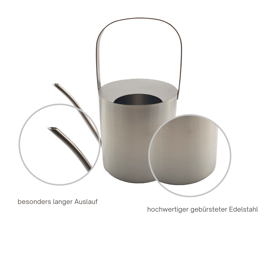 Gießkanne Edelstahl gebürstet 2,5 Liter Giesskanne Wasserkanne Blumen gießen