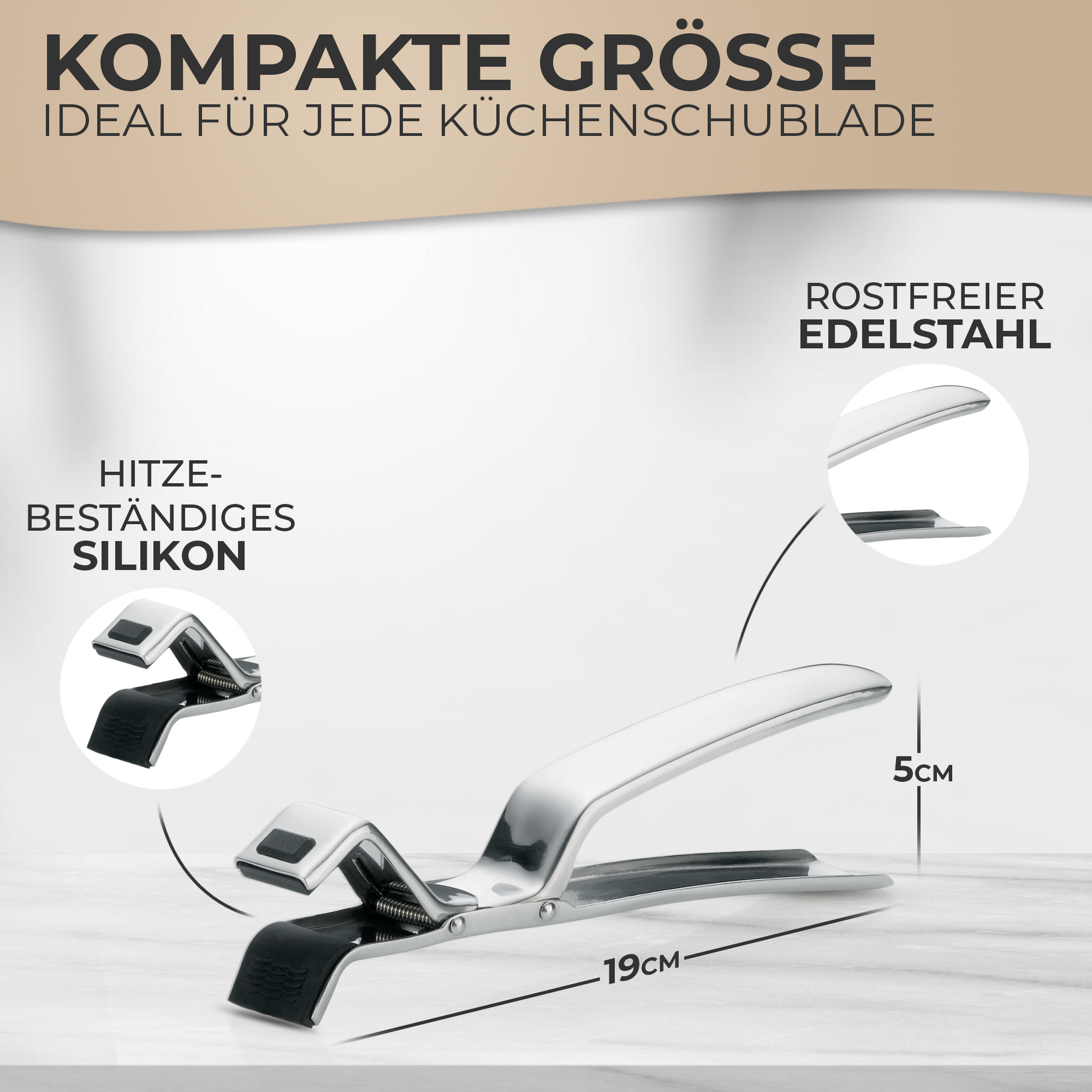 Die kompakte Backofenzange misst 19 cm und lässt sich mühelos in jeder Küchenschublade verstauen, sodass sie im Bedarfsfall sofort griffbereit ist. Sie bietet nicht nur praktische Vorteile, sondern stellt außerdem eine ideale Geschenkoption für Koch- und Backliebhaber dar, die einen zuverlässigen Küchenhelfer schätzen.