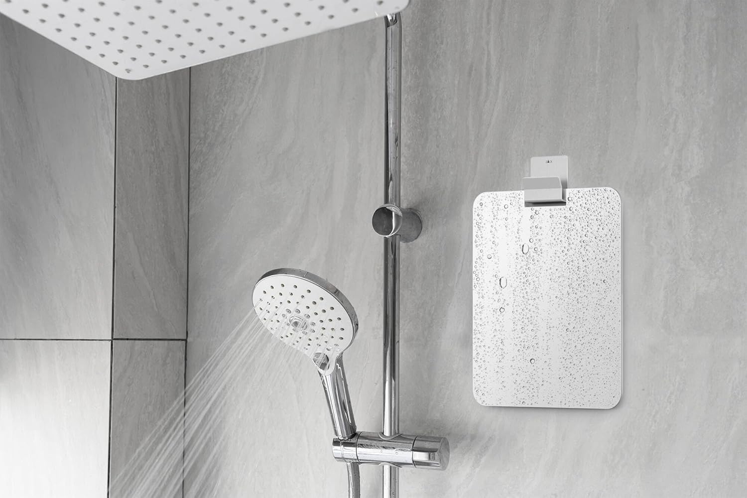 Beschlagfrei Der Spiegel kann im Duschbereich angebracht werden Klares Spiegelbild, selbst bei Wasserdampfentwicklung während des Duschens und bei Wasserspritzern Für Rasur, Haarpflege, Abschminken, Zahnpflege unter der Dusche Leichtes Abnehmen des Spiegels möglich Bruchsicher Mit selbstklebendem, breitem Edelstahlhaken